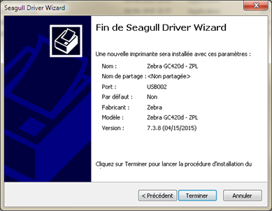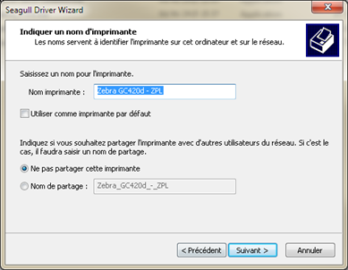 - Indiquez le nom Zebra GC420d-ZPL
