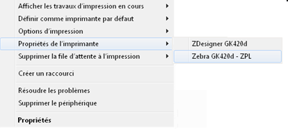 - Faites un clic droit sur l'imprimante Zebra GC420d-ZPL