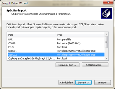 Séléctionnez le prot d'impression de la ZEBRA