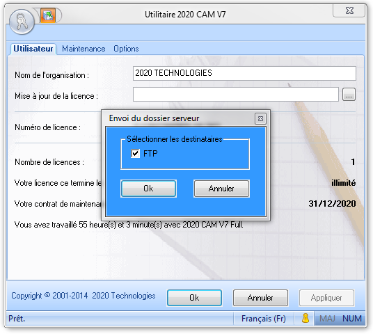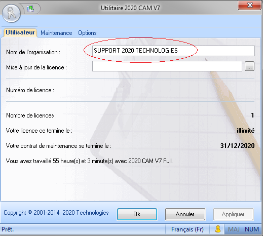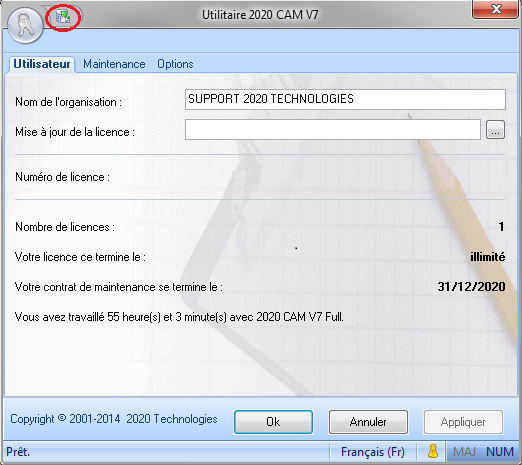 MENU : DEMARRER » Tous les programmes » 2020 CAM V7 » Utilitaire 2020 CAM