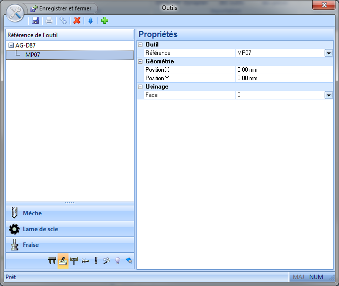 Indiquer le Diamètre d’encombrement en mm (Valeurs d’encombrement du groupe d'outil)
