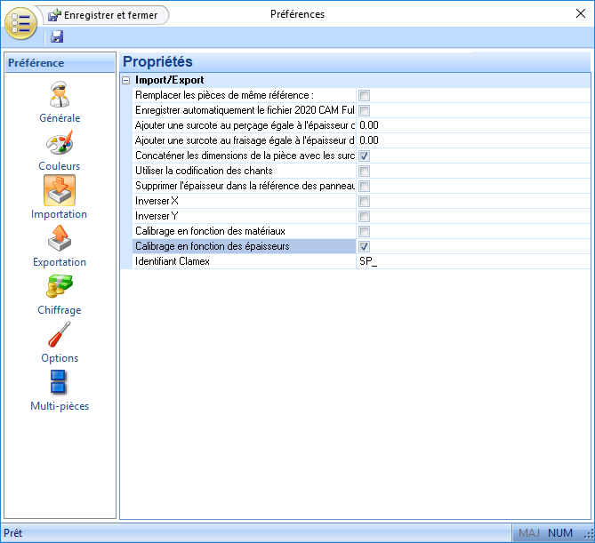 Information pour paramétrage du calibrage, lors de l’importation de 2020 CAD, en fonction de l'épaisseur