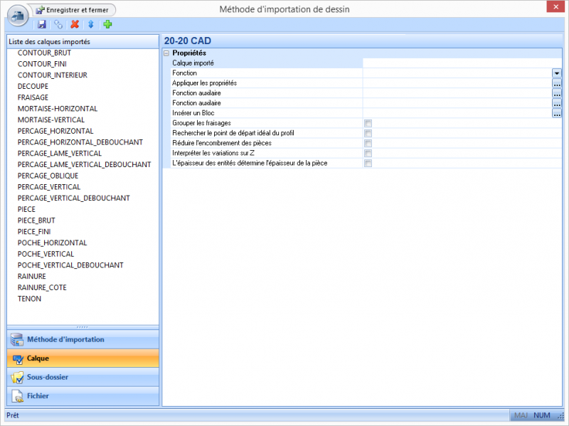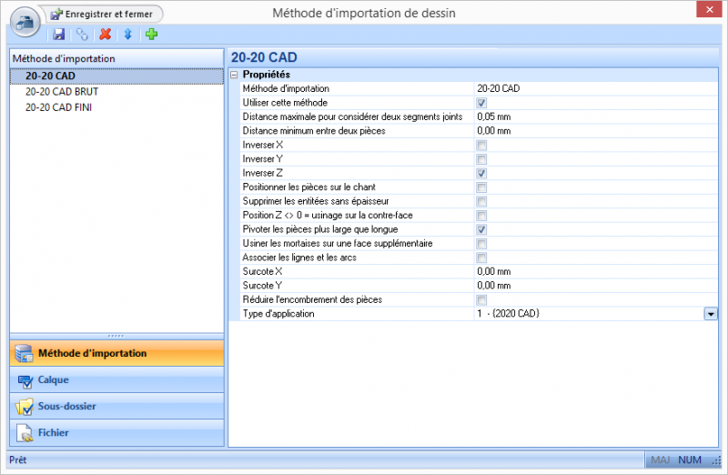- indiquer le nom du modèle “20-20 CAD BRUT”